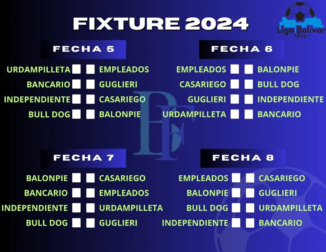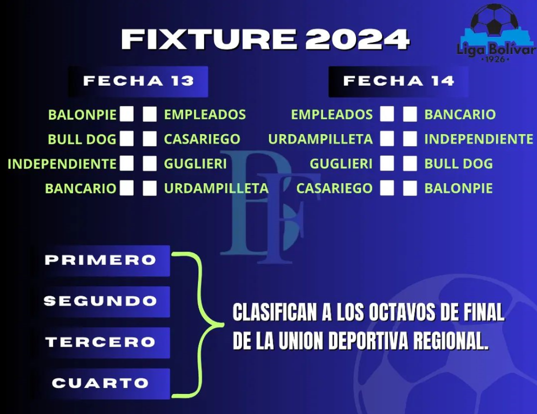 Bancario, Casariego, Bull Dog, Urdampilleta, Balonpié, Ciudad de Bolívar, Independiente, Empleados de Comercio.